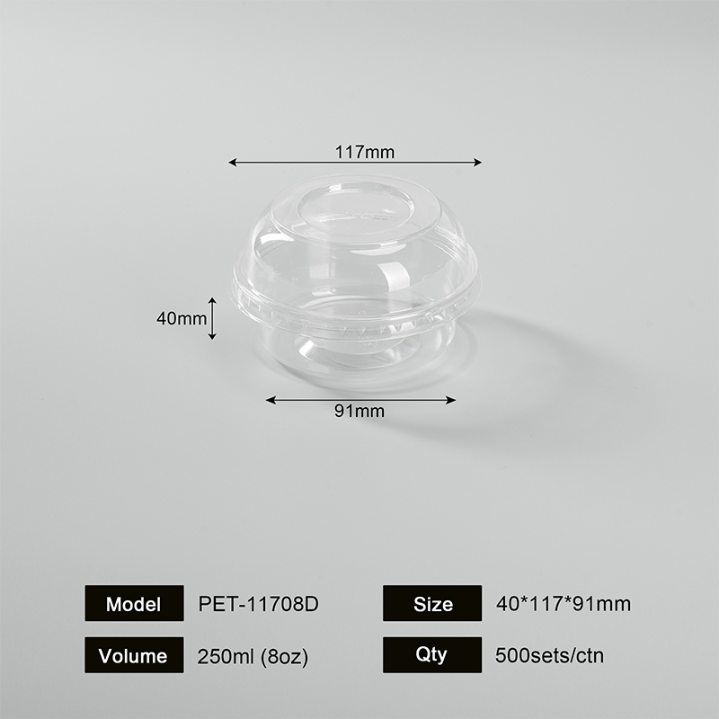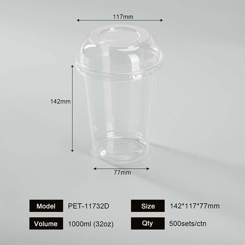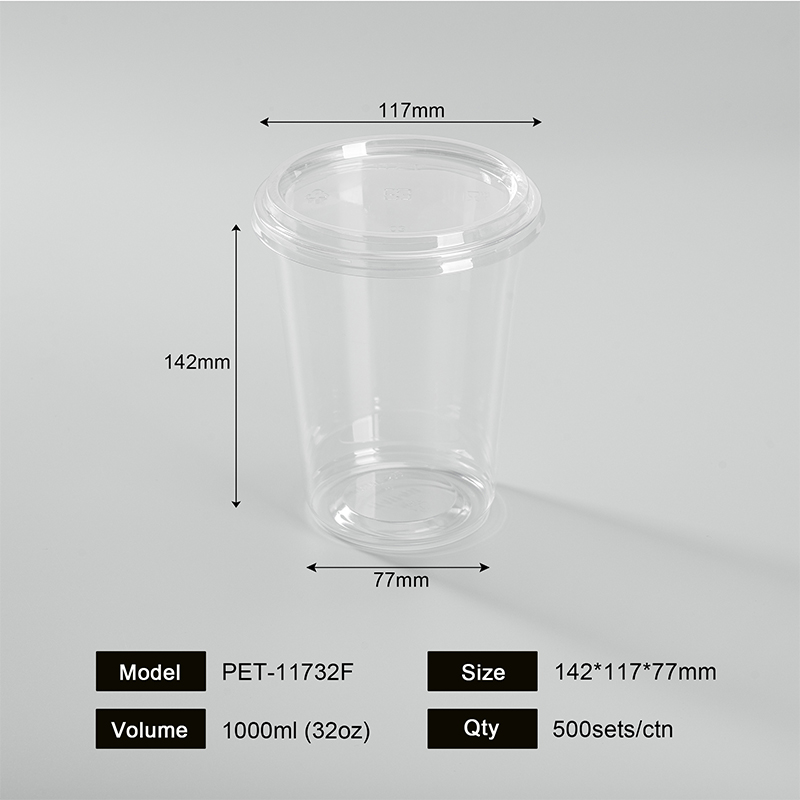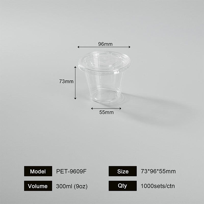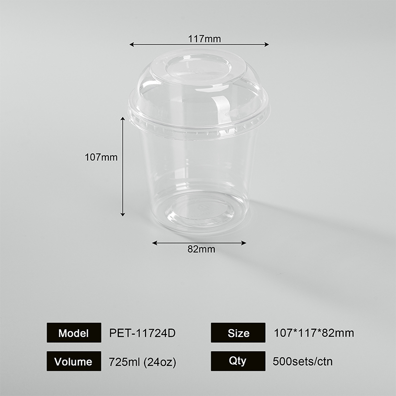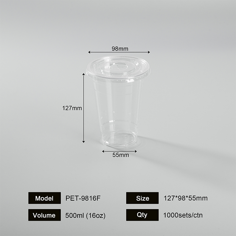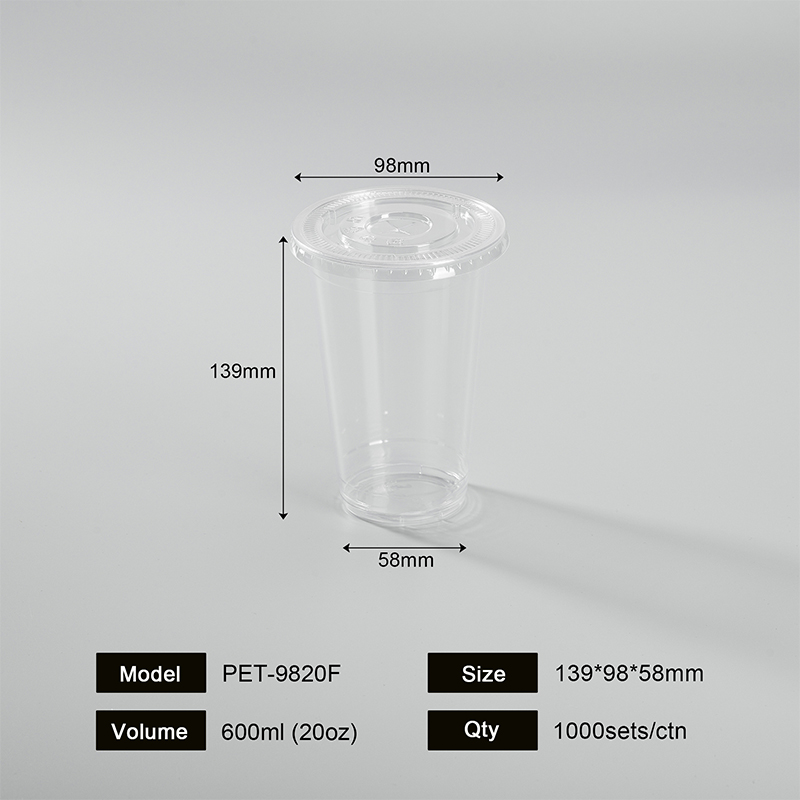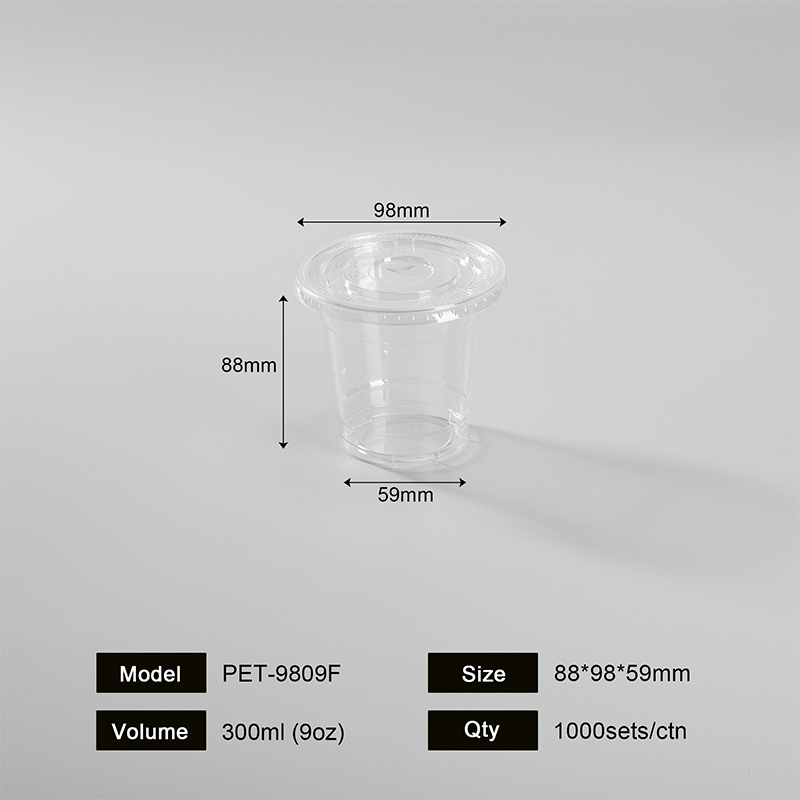 PET cup is a transparent plastic cup made of polyethylene terephthalate material, which is widely used to hold cold drinks such as carbonated drinks, juices, milk tea, smoothies, etc. Its characteristics include high transparency, light and durable, environmentally friendly and recyclable, and low cost. PET cups can clearly show the color of the drink and enhance visual appeal. At the same time, they are lightweight, not easy to break, and easy to carry. In addition, PET materials are recyclable, in line with environmental protection concepts, and have more price advantages than other materials. As a high-quality, environmentally friendly disposable food packaging supplier established in 2010, we are always committed to sustainable development and innovation. Our PET cup products meet the dynamic needs of the food service industry and provide customers with environmentally friendly, practical and economical solutions.