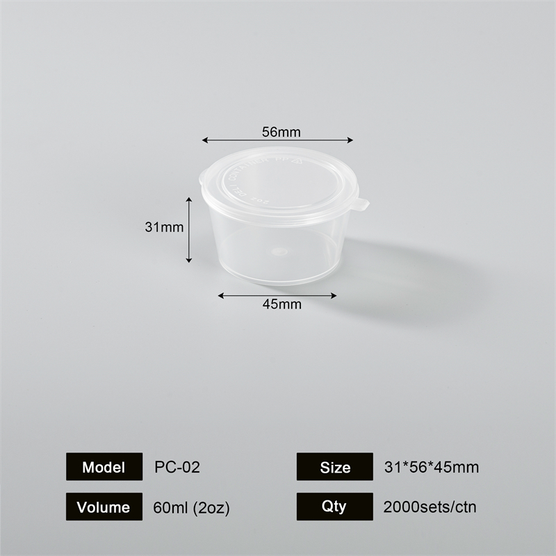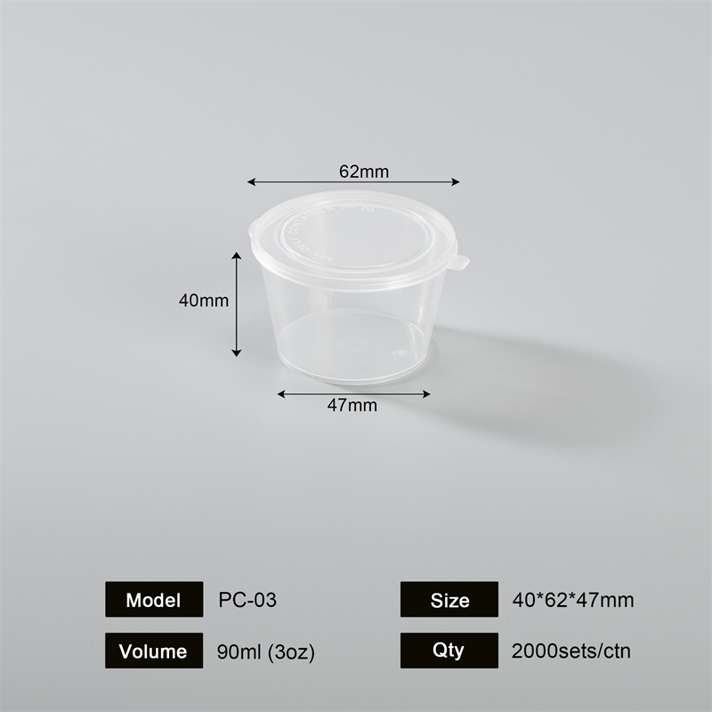 There are many types of Portion Cup, which can be divided into many types according to different capacity, shape design and application scenarios. In terms of capacity, Portion Cup range from a few milliliters for condiments to tens of milliliters for sauces or salad dressings, meeting the needs of different food portions. In terms of shape design, Portion Cup include round, square, conical, etc. These designs are not only convenient for stacking and storage, but also optimize the convenience of pouring the contents. In addition, our company provides some Portion Cup with special functions, such as scale markings, degradable materials, leak-proof design, etc., to meet the use needs in specific scenarios.