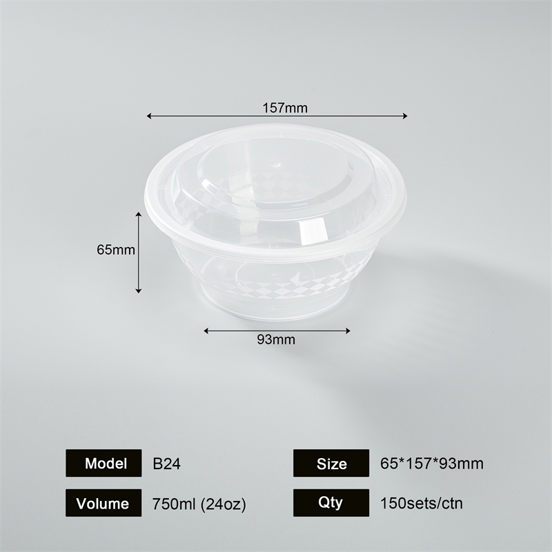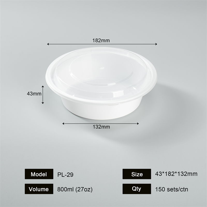 Round plastic food containers, with their versatility, durability and convenience, have become the preferred packaging for take-out, fast food, convenience stores and all kinds of catering services. As a professional round plastic food container supplier and custom round plastic food container factory, our company not only provides this series of high-quality products, but also is committed to promoting the concept of environmental protection and sustainable development.